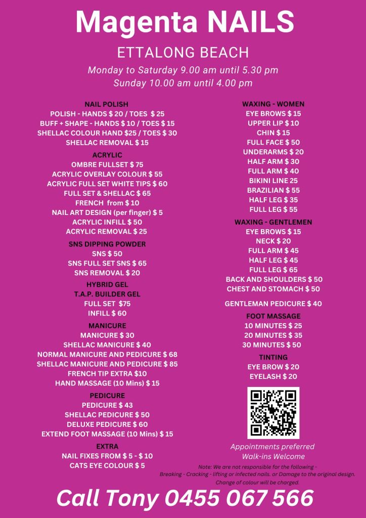 Take a look at our Magenta NAILS salon Menu
