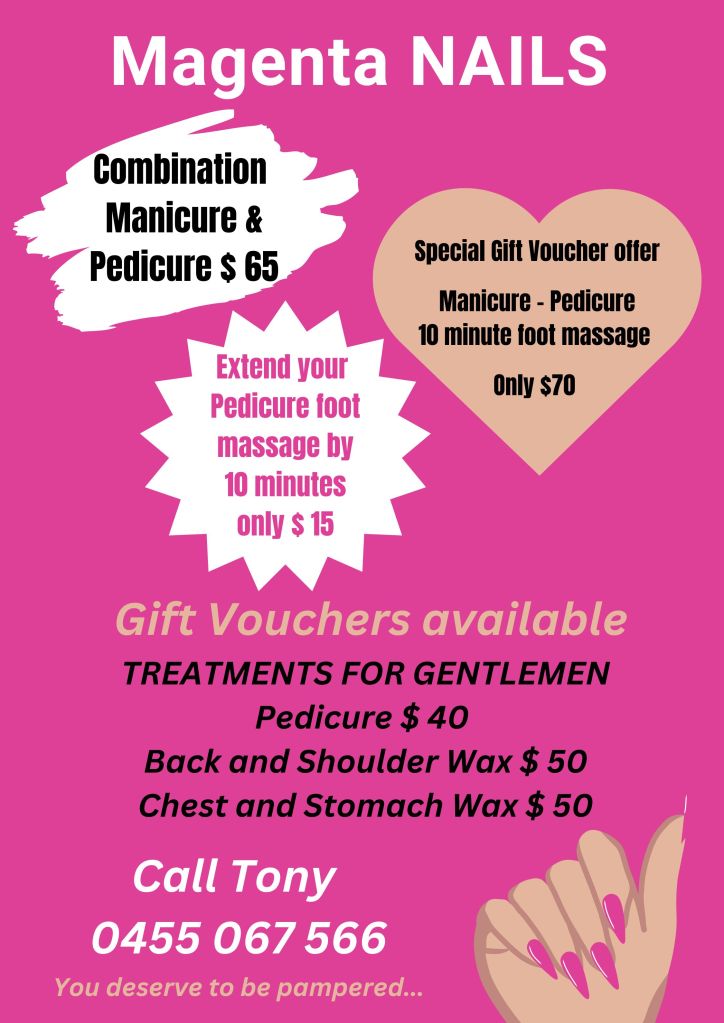 Magenta Nails – 406 Ocean View Road Ettalong Beach.