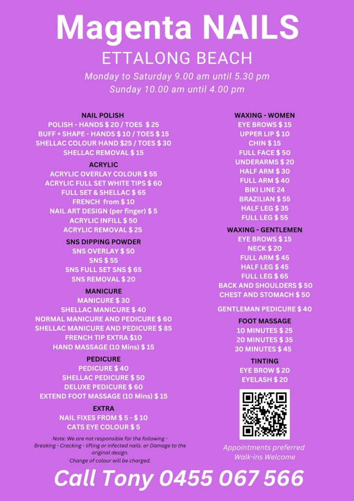 Facebook: https://www.facebook.com/MagentaNailsEttalongBeach